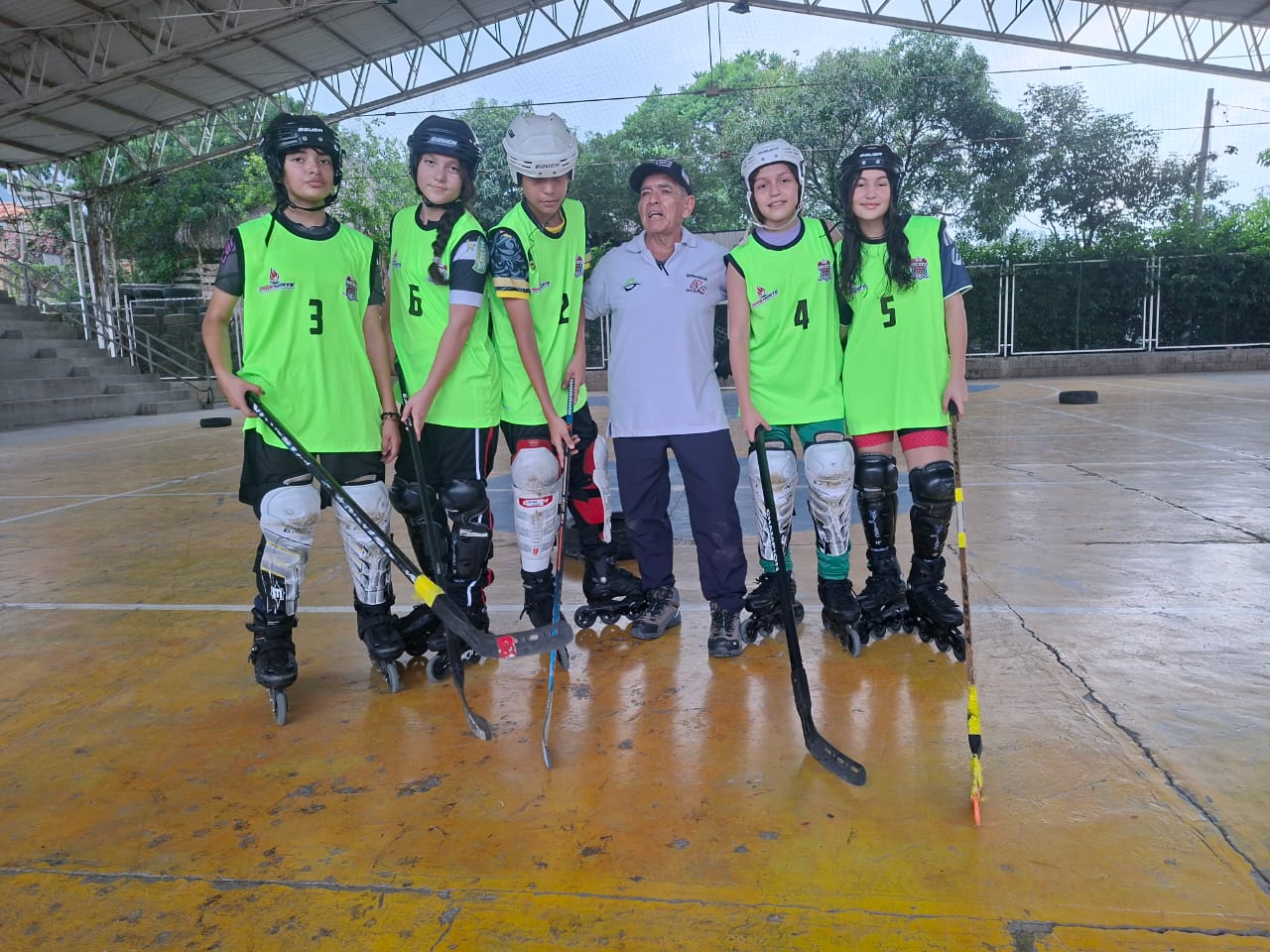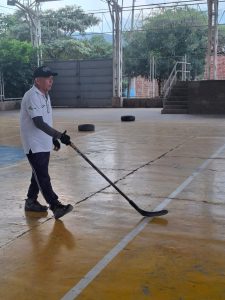 A medida que ha avanzado el tiempo, el profesor ha trabajado en el acondicionamiento del espacio. Tiene las barreras para evitar que salga el disco y las porterías están listas para instalarlas. Los patines en línea, el palo, el casco con visor o rejilla, los guantes, las espinilleras y las coderas fueron conseguidos mediante donaciones.